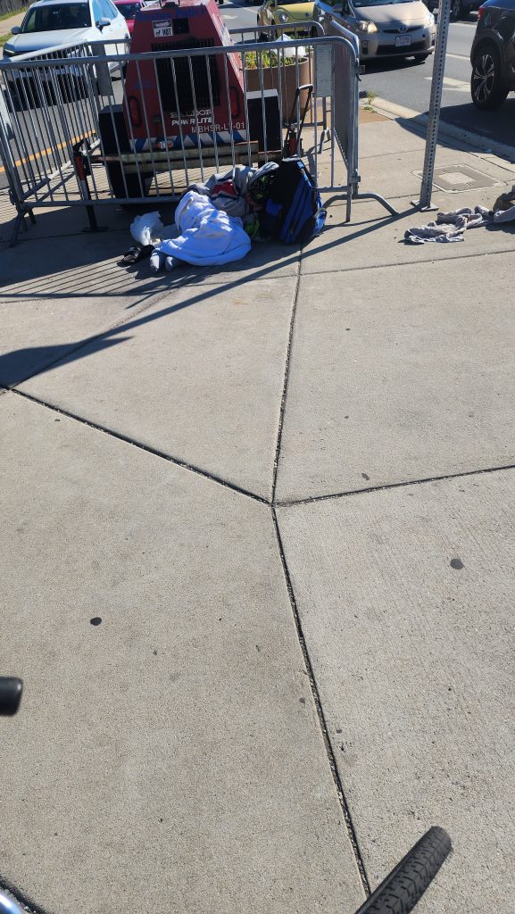 At around 9:00 a.m. I rode my bike to Atkinson Street. The famous Mass and Cass Ground zero for addiction as well as its symptom homelessness. When I arrived there the street had been cleaned up. It had been cleaned up quite a while ago. I saw quite a few homeless people and addicts congregating in pockets or standing alone.