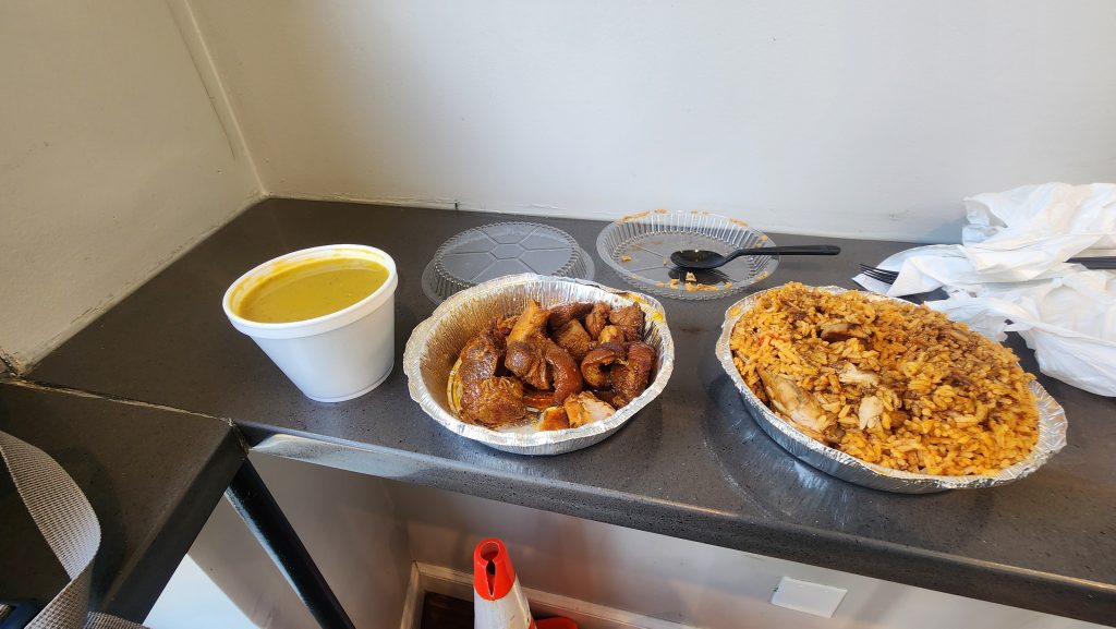 I stopped at a Spanish bodega down the street and I got some Spanish food there. There were two options: either a $13 plate or a $15 plate. I told him I would spend the extra two bucks. I received a huge meal of rice and chicken, pork, and beans. Surprisingly more than I could possibly eat. I ate what I could and I saved the rest. I figured I could just give the food to Dylan and Lexi when we did the interview.